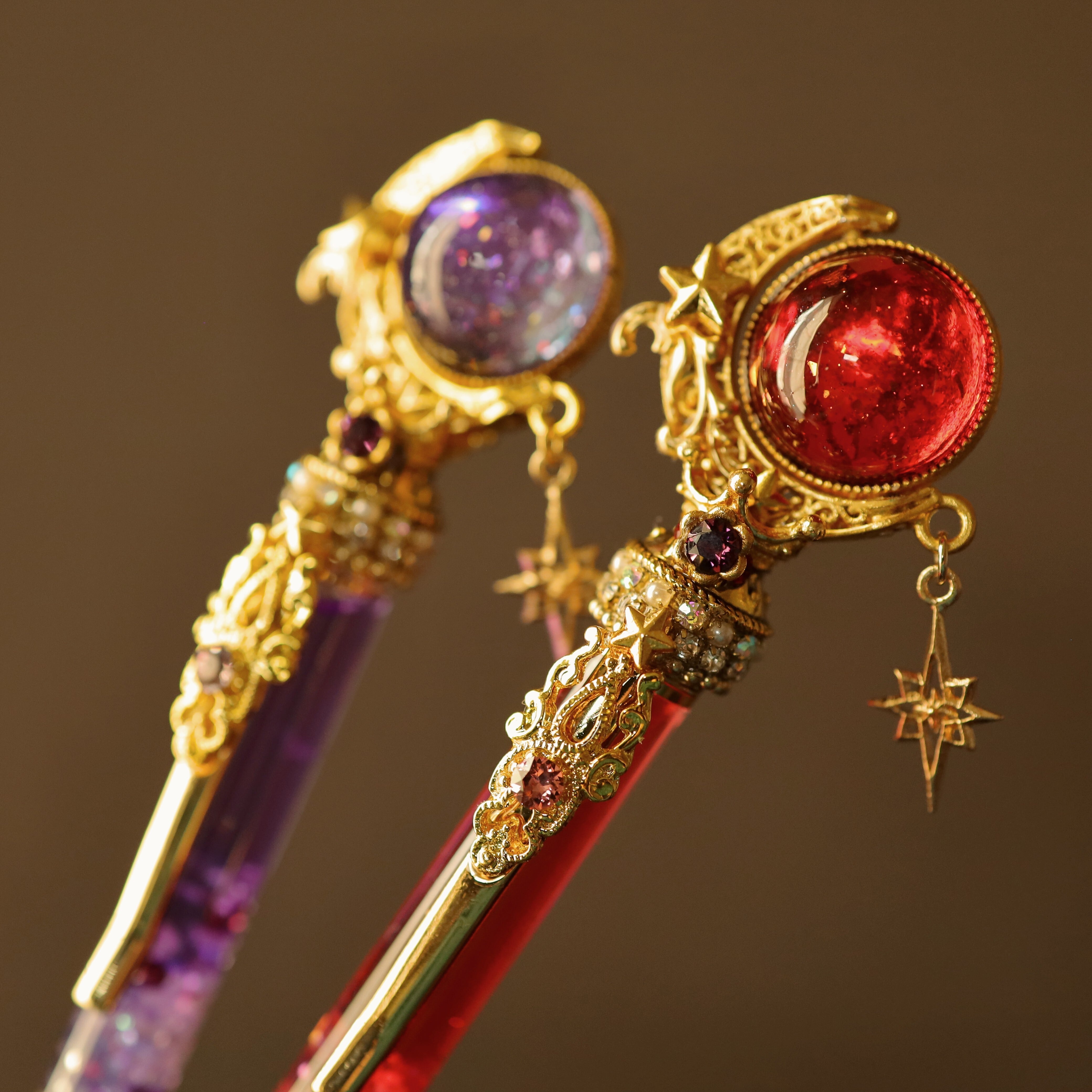 くるくると回る魔法珠に宝石を閉じ込めたスノードームのペン軸と幻想的な煌めきを詰め込んだ魔法の杖.