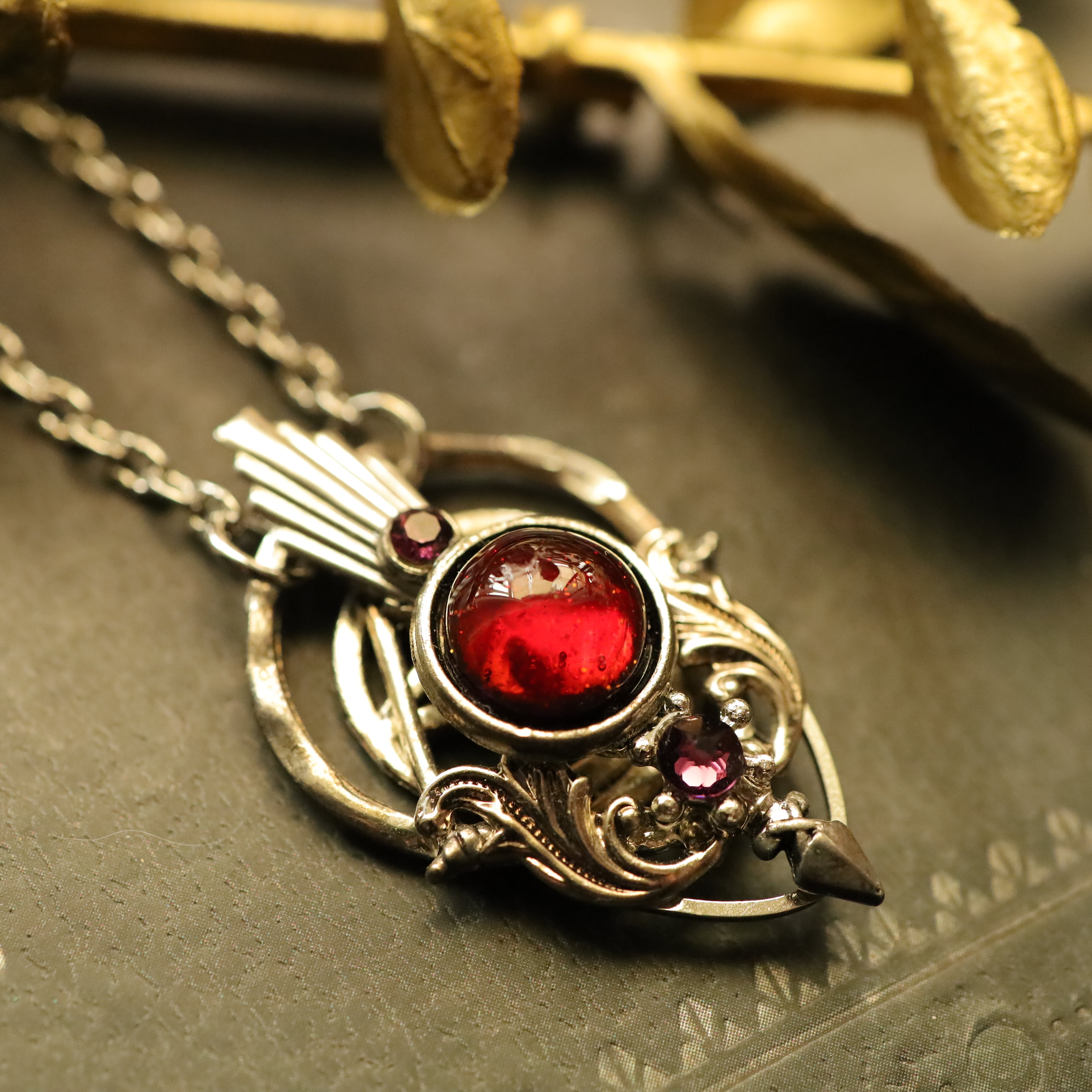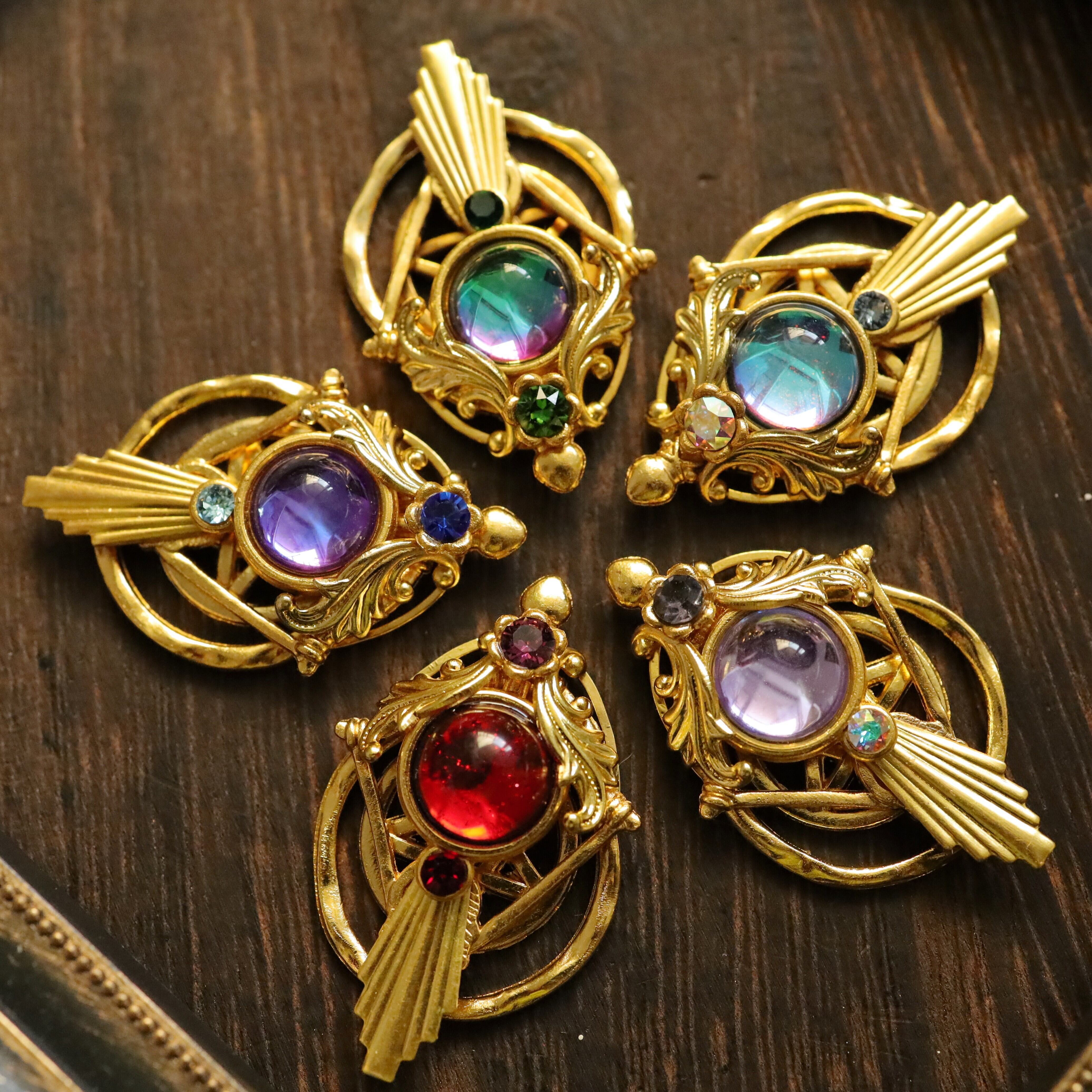50cmチェーン付き。シルバーでもお作りできます。真ん中の宝石が濃いブルー、偏光の深いグリーン、薄紫、イエロー、濃いピンクはガラス製。それ以外はレジン製となります。